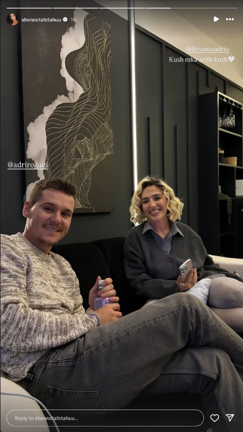 Në rrjete sociale, ajo ka treguar se për vizitë i kanë shkuar Iliriana dhe Adri teksa ky i fundit shihet teksa këndon në një video të ndarë nga Xheneta.